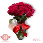 Sugerencia de mensaje para el Florero de 24 rosas rojas: “¿De qué trabajas? +Soy ladrón, y voy a apropiarme de tu amor.”