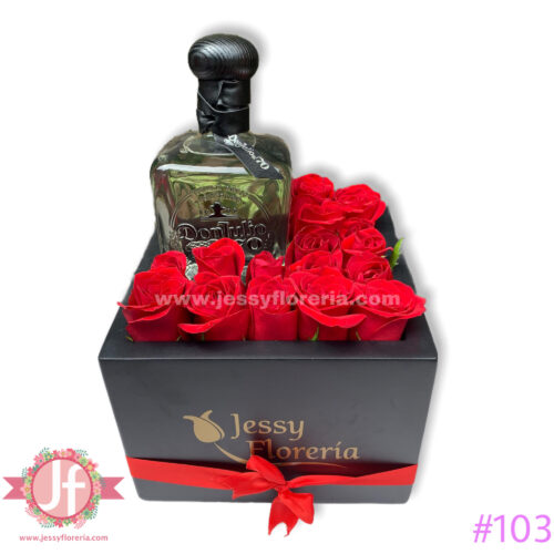Cofre con 40 rosas, 20 ferreros y Don Julio 70
