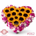 Caja corazón rosas rositas y girasoles
