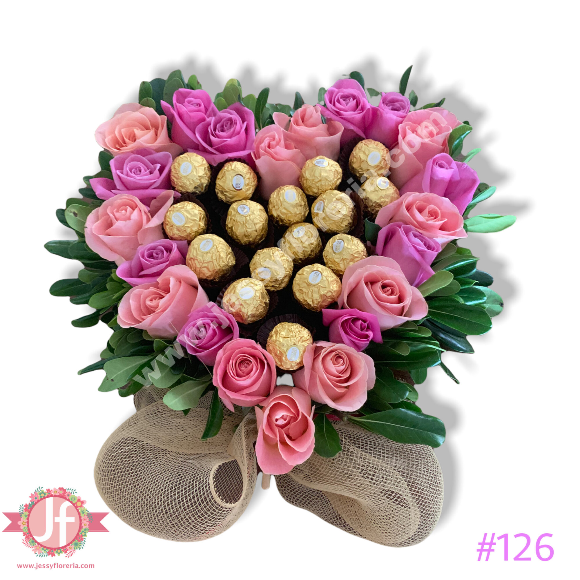 Corazón de rosas rositas y Ferreros