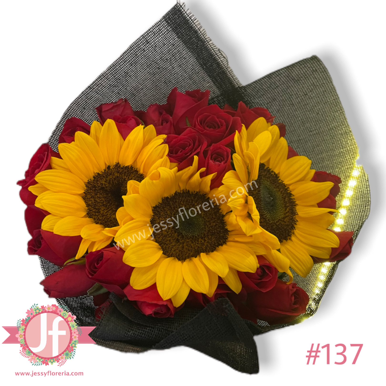 - Opciones para Bouquet 3 girasoles y 24 rosas rojas