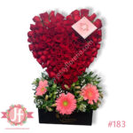 Puedes elegir el color de las flores o cotizar en otro tamaño, además de añadir globos, chocolates, botella de vino tinto o peluche.