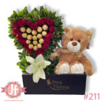 Puedes elegir el color de las flores o cotizar en otro tamaño, además de añadir globos, chocolates, botella de vino tinto o peluche.