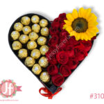 Corazón rosas, girasol y Ferrero_