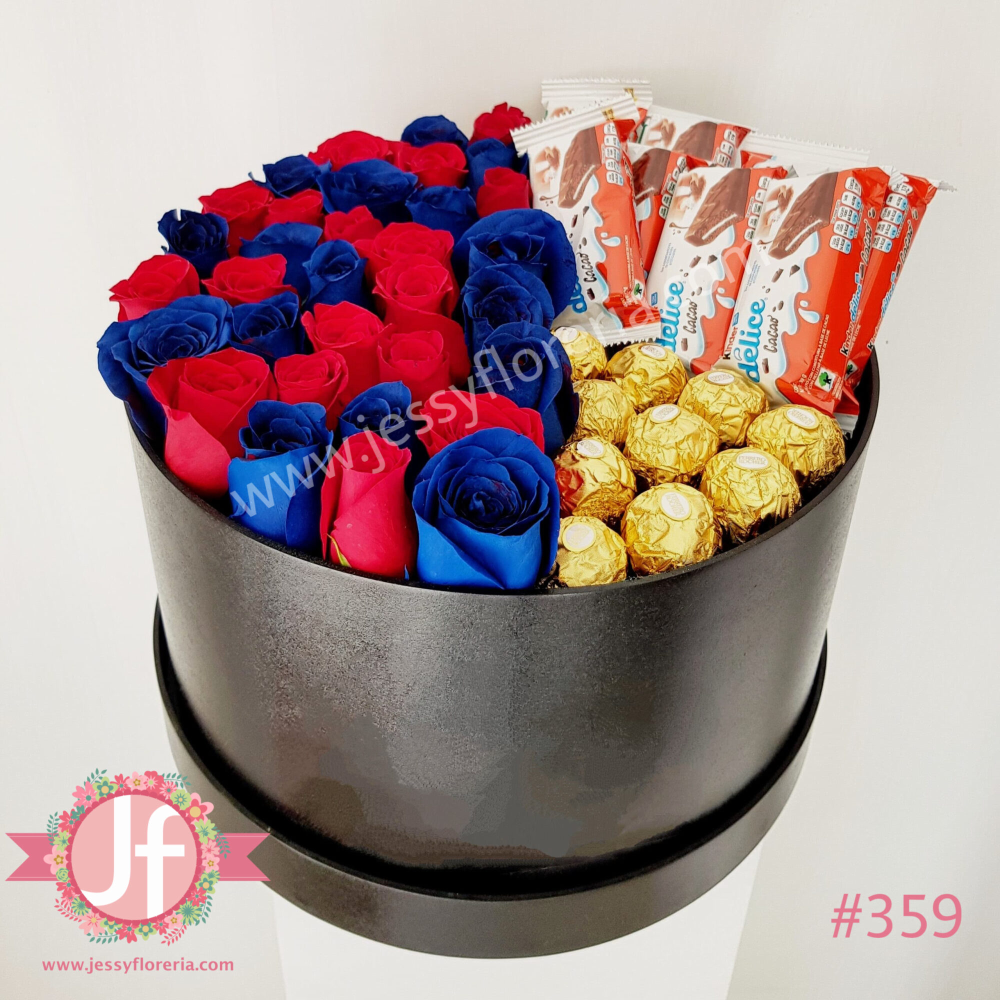 - Opciones para el Caja con 35 rosas, 8 kinder delice y 10 ferreros