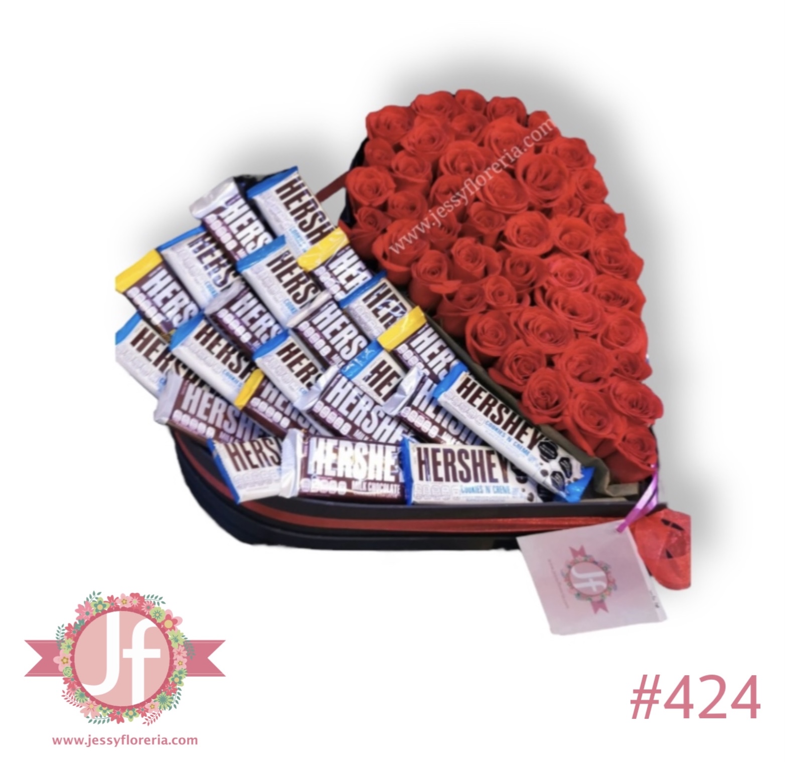 Corazón 50 rosas y 22 Hersheys_