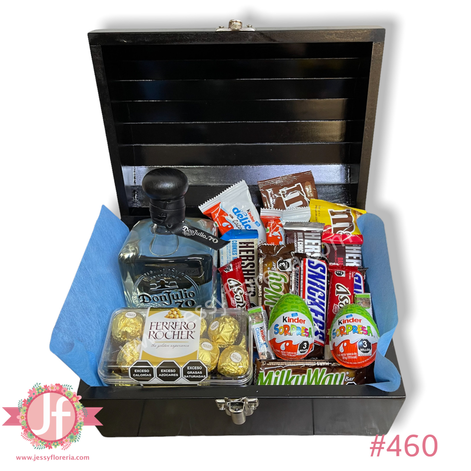 Cofre Don Julio 70, Ferrero y chocolates surtidos.