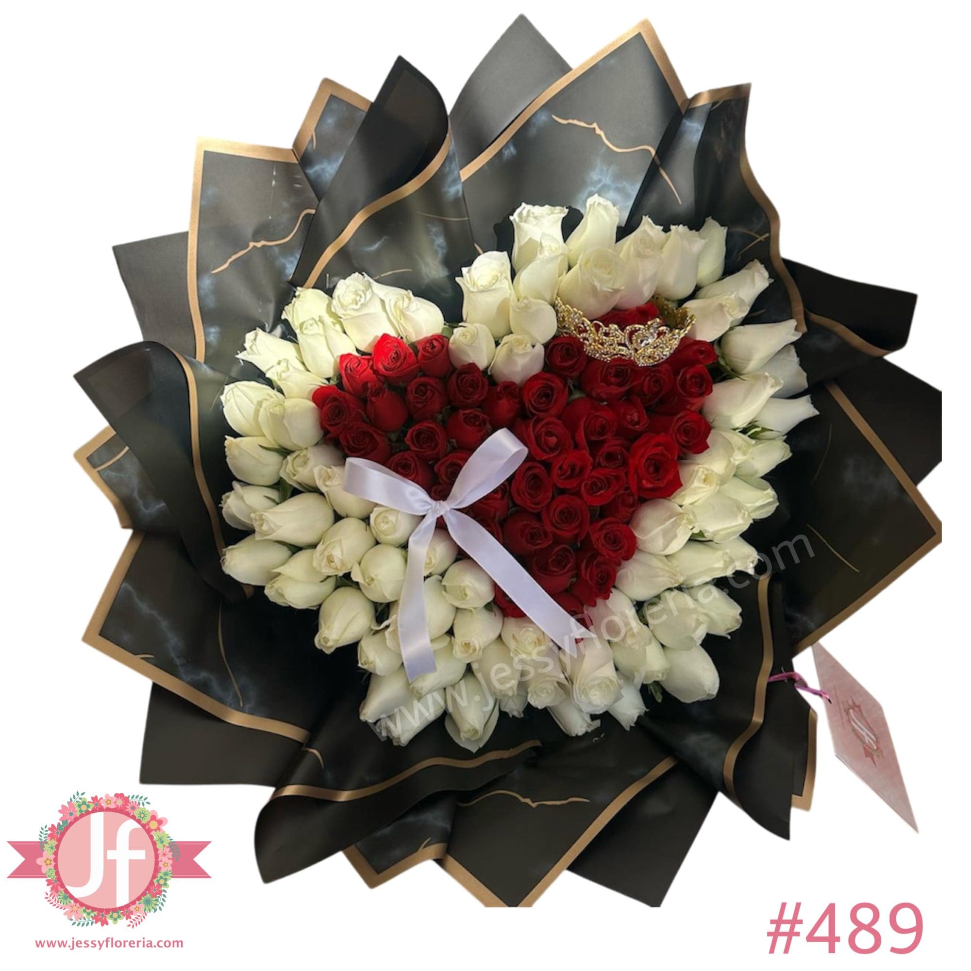 Ramo de 100 rosas corazón con corona y moño