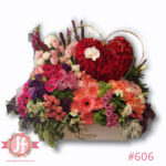 Puedes elegir el color de las flores o cotizar en otro tamaño, además de añadir globos, chocolates, botella de vino tinto o peluche.
