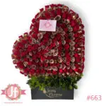 Puedes elegir el color de las flores o cotizar en otro tamaño, además de añadir globos, chocolates, botella de vino tinto o peluche.