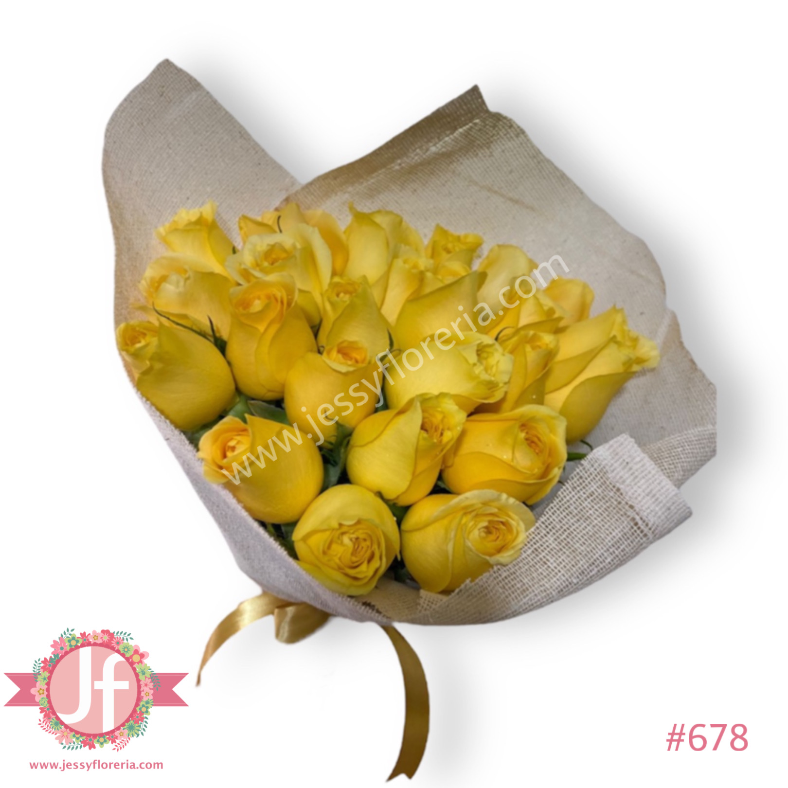 Sugerencia de mensaje para el Ramo de 24 rosas amarillas: “Esa elegancia que tienes caminando, no la consigue ni un cisne nadando.”