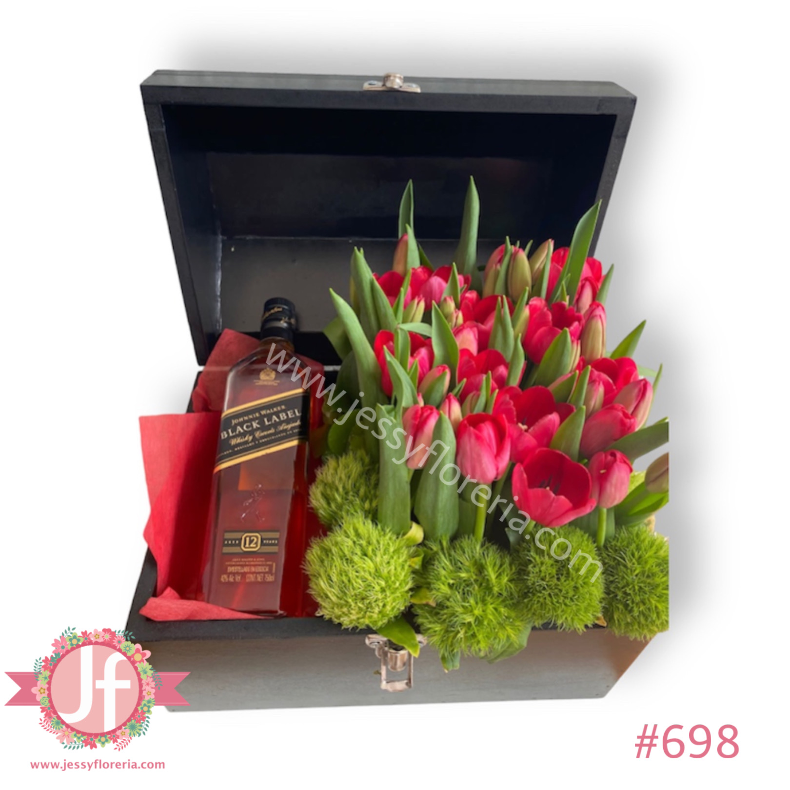 Cofre con 40 tulipanes y Black Label