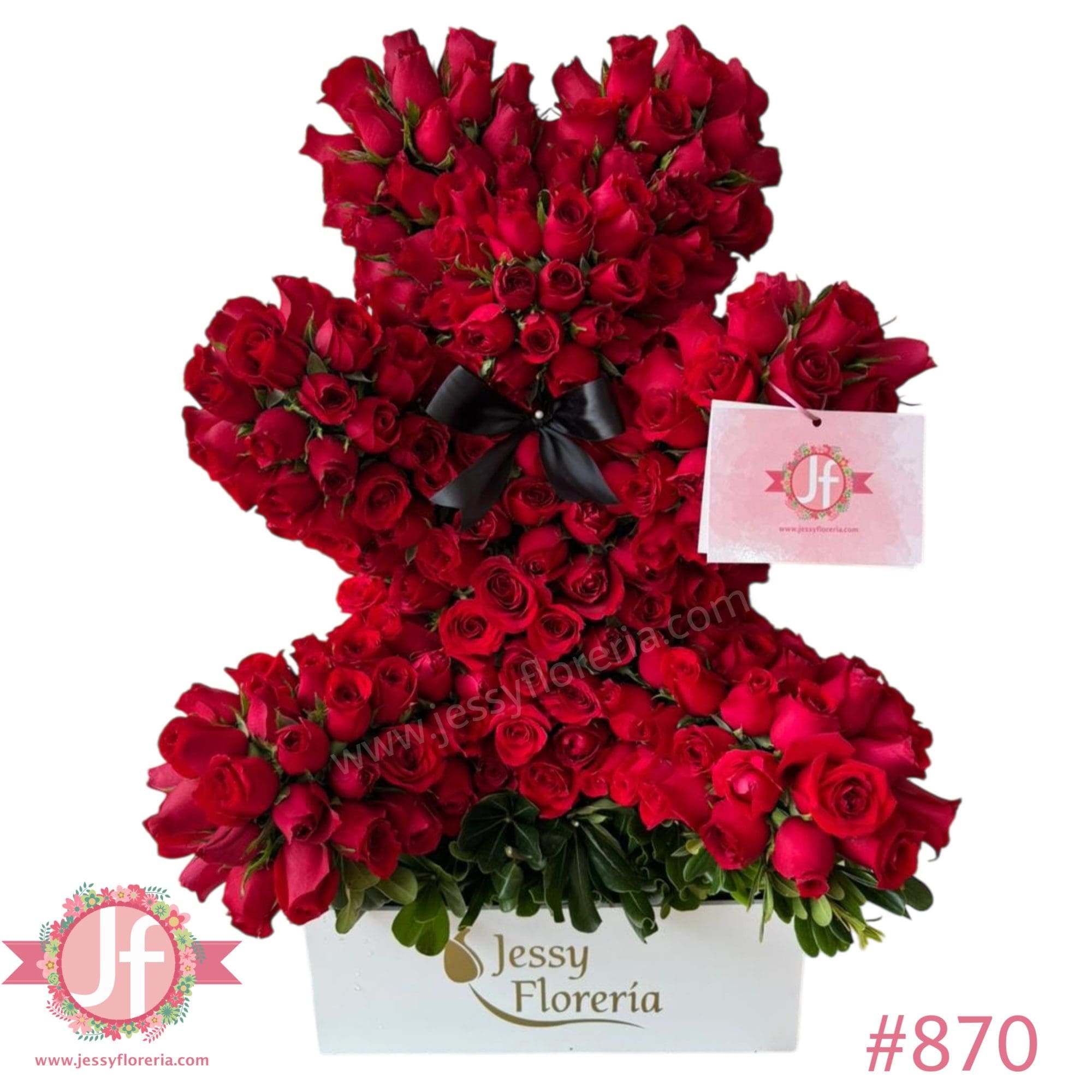 Puedes elegir el color de las flores o cotizar en otro tamaño, además de añadir globos, chocolates, botella de vino tinto o peluche.