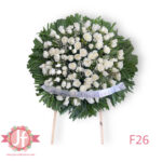 Sugerencia de mensaje para la Corona de 50 rosas blancas: “Siempre en nuestra memoria.”