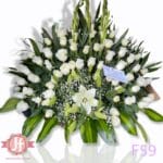 - Opciones para Pie de caja mediano con 60 rosas, lilis y follajes