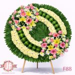 Sugerencia de mensaje para la Corona doble copete rosas rositas: “Su ausencia se hará notar, pero la felicidad que ha dejado detrás de si nunca desaparecerá del todo; mis condolencias.”