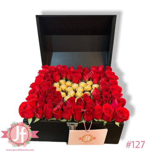 Cofre 60 rosas y 20 Ferreros