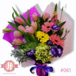 - 10 Tulipanes, 3 gerberas, lisianthus y follajes