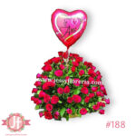 Sugerencia de mensaje para Canasta de 120 rosas y globo : “Y es que te amo tanto que no lo puedo ni explicar”