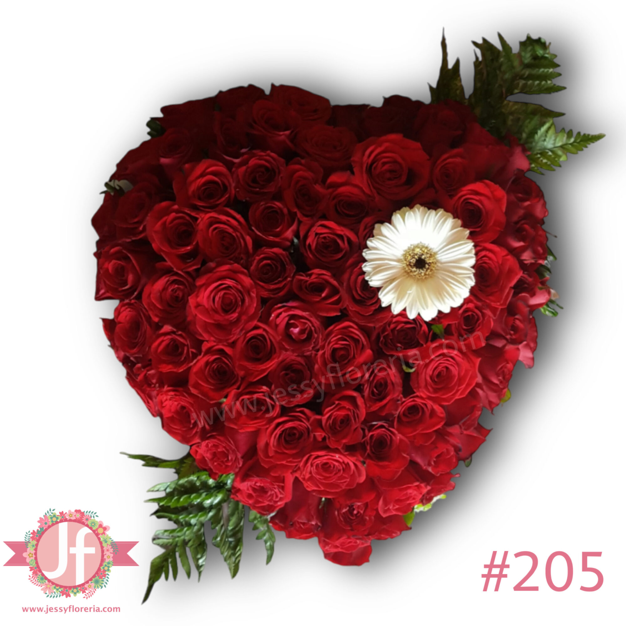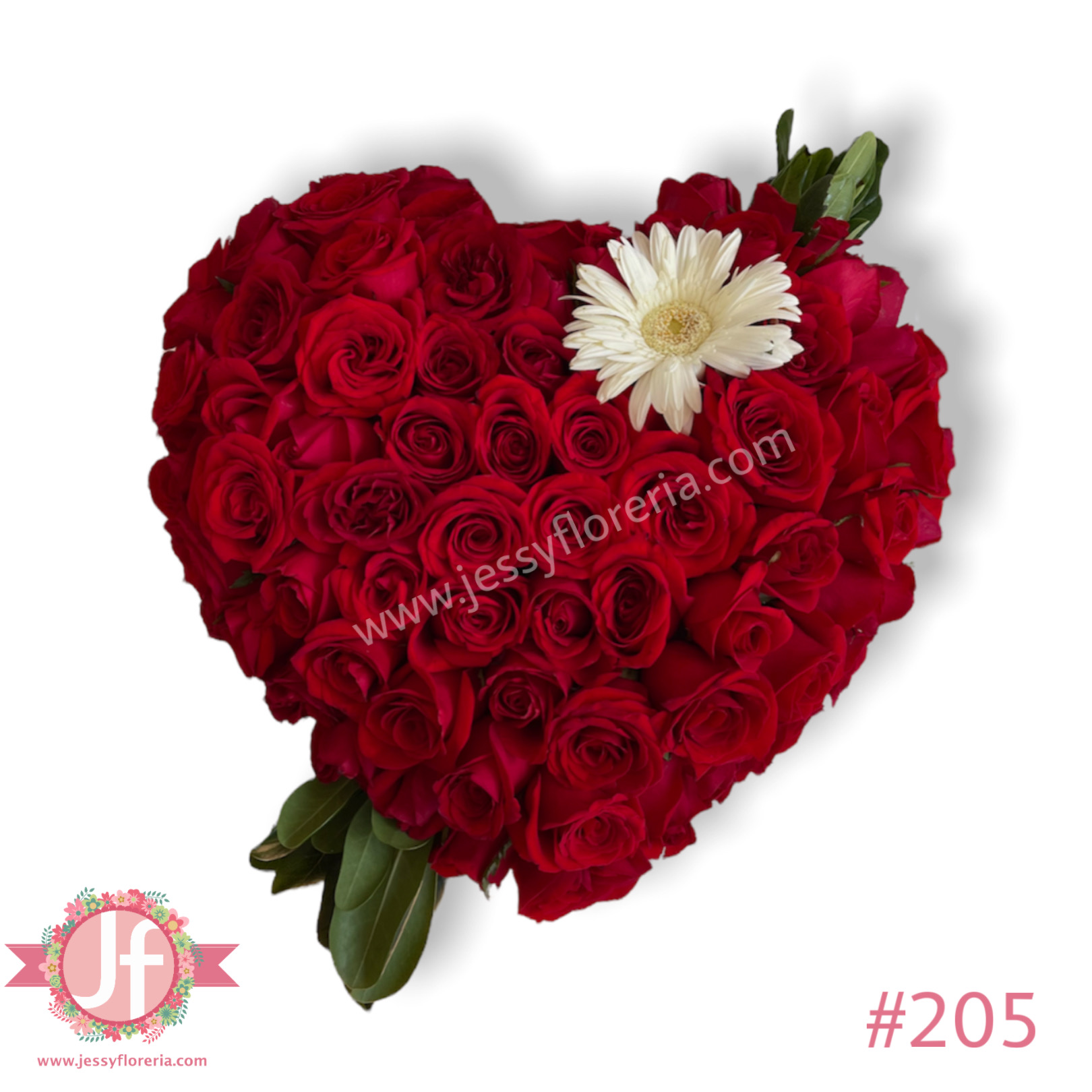 - Opciones para Corazón de 80 rosas rojas y gerbera blanca