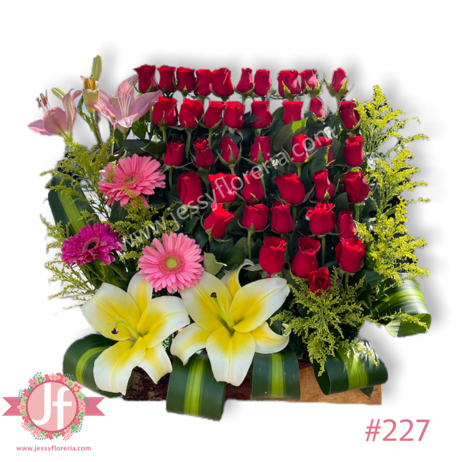 Puedes elegir el color de las flores o cotizar en otro tamaño, además de añadir globos, chocolates, botella de vino tinto o peluche.