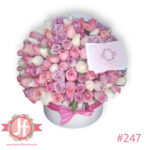 Puedes elegir el color de las flores o cotizar en otro tamaño, además de añadir globos, chocolates, botella de vino tinto o peluche.