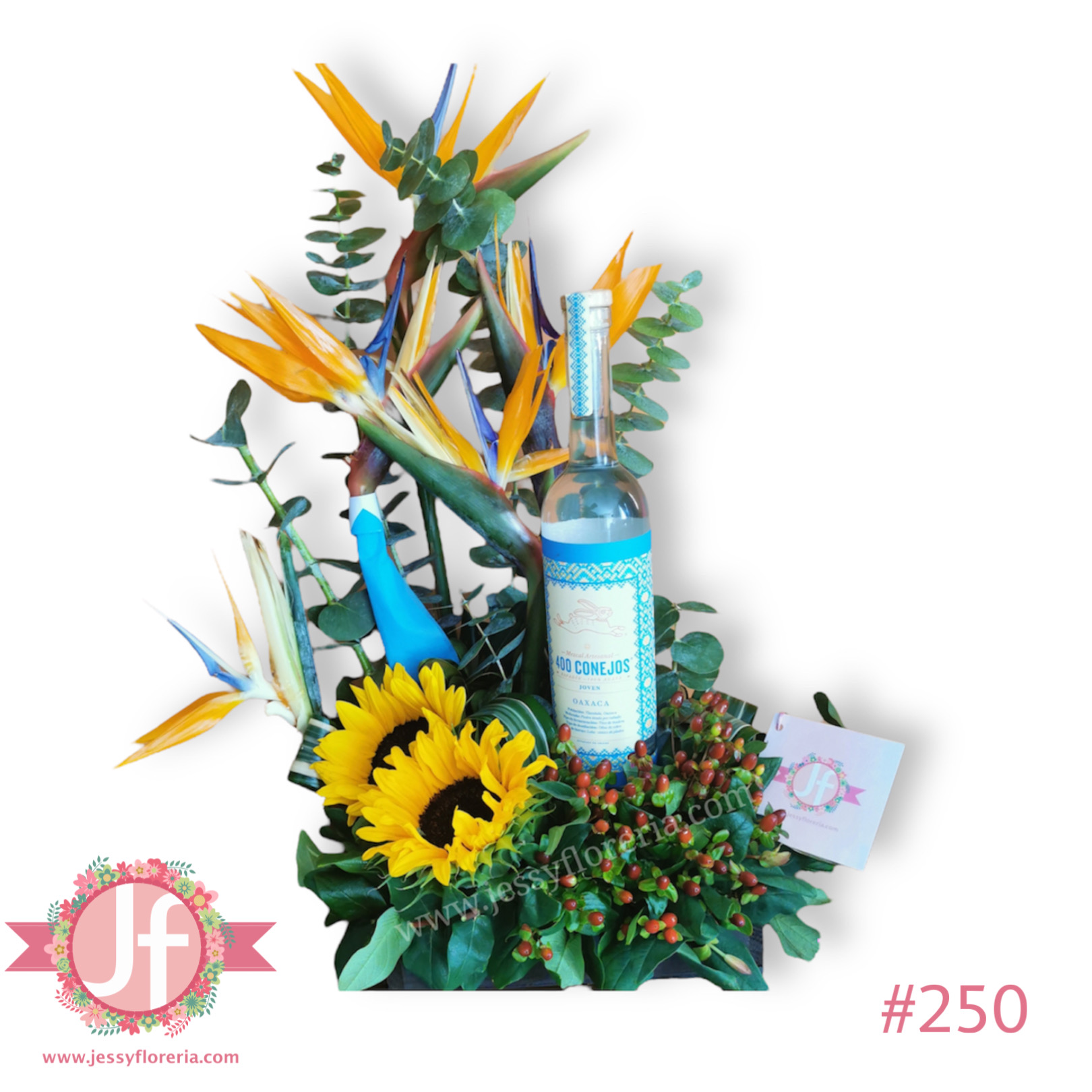 - Opciones para Caja Girasol, ave de paraíso y mezcal