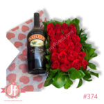 Puedes elegir el color de las flores o cotizar en otro tamaño, además de añadir globos, chocolates, botella de vino tinto o peluche.