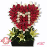 Puedes elegir el color de las flores o cotizar en otro tamaño, además de añadir globos, chocolates, botella de vino tinto o peluche.
