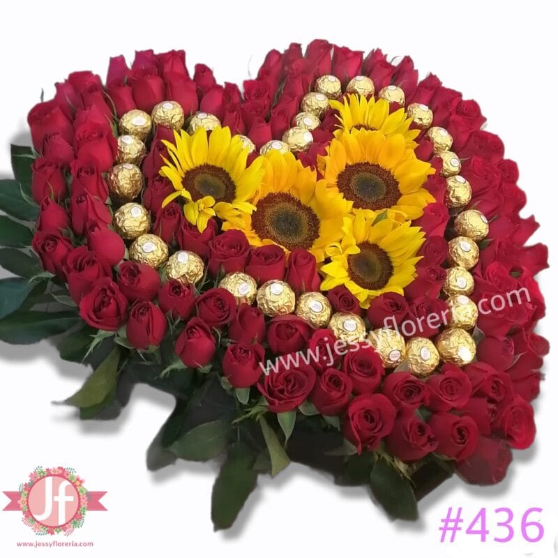 Caja corazón de rosas, Ferreros y girasoles_