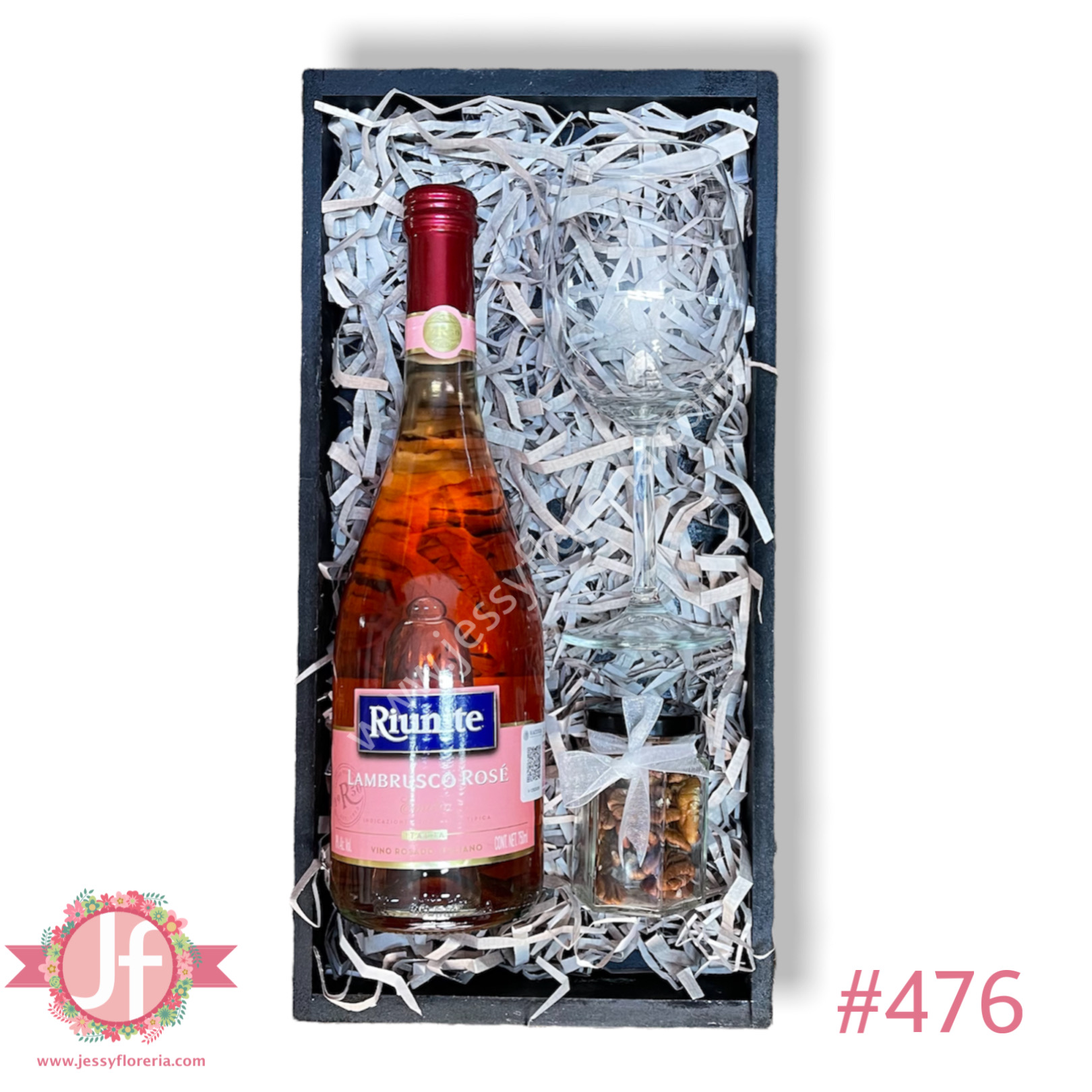 - Opciones para Caja Lambrusco Rosa, botana y copa