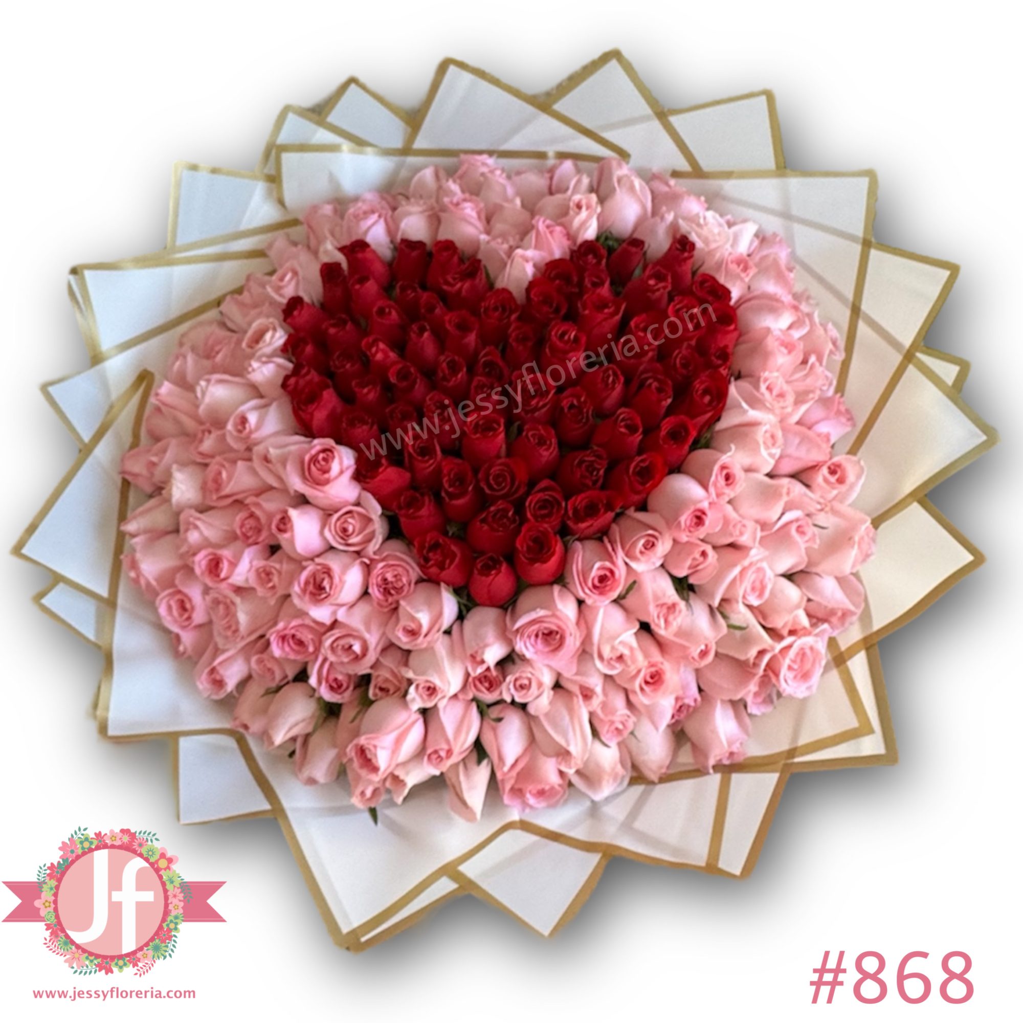 Ramo corazón de 100 rosas