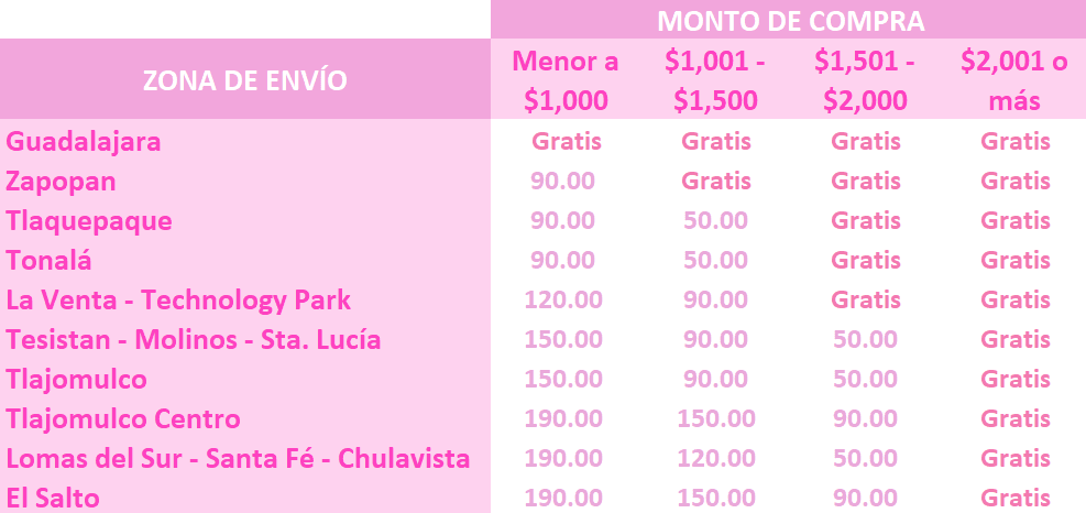 Hacemos envíos en la Zona Metropolitana de Guadalajara (Guadalajara, Zapopan, Tlaquepaque, Tonalá, El Salto, Tlajomulco de Zuñiga).