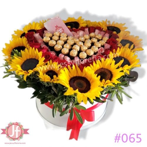 Caja girasoles rosas y Ferreros
