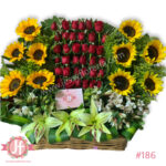 Canasta 36 rosas y 10 girasoles