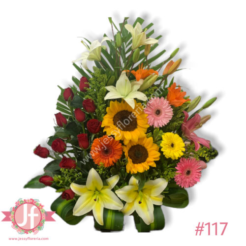 Ramo 24 rosas rojas, 10 tulipanes y girasol – Un día de anticipación