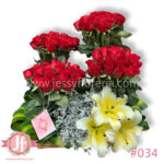 Puedes elegir el color de las flores o cotizar en otro tamaño, además de añadir globos, chocolates, botella de vino tinto o peluche.