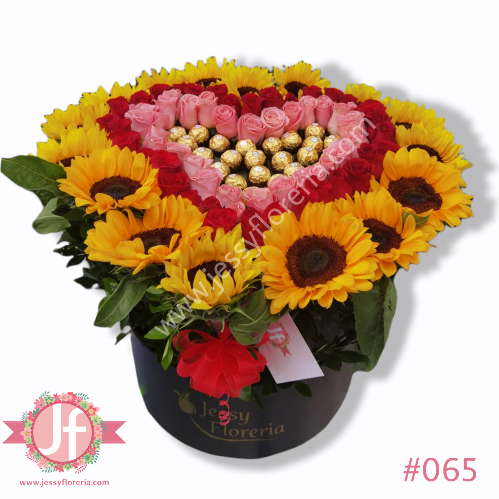 Caja girasoles rosas y Ferreros