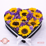 Caja de corazón con girasoles y sifón