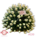 Sugerencia de mensaje para Canasta de 200 rosas blancas: “Me dijeron que imagine en algo que me haga feliz, y ahí estabas tu detrás de la cortina de mi mente, sonriendo”