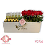 Puedes elegir el color de las flores o cotizar en otro tamaño, además de añadir globos, chocolates, botella de vino tinto o peluche.