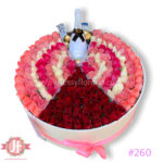 Puedes elegir el color de las flores o cotizar en otro tamaño, además de añadir globos, chocolates, botella de vino tinto o peluche.