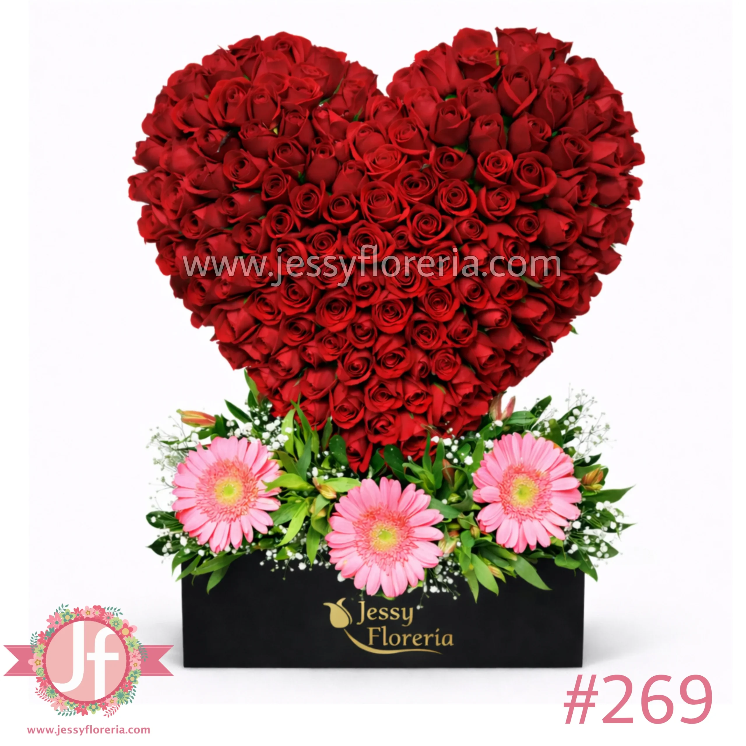 Puedes elegir el color de las flores o cotizar en otro tamaño, además de añadir globos, chocolates, botella de vino tinto o peluche.