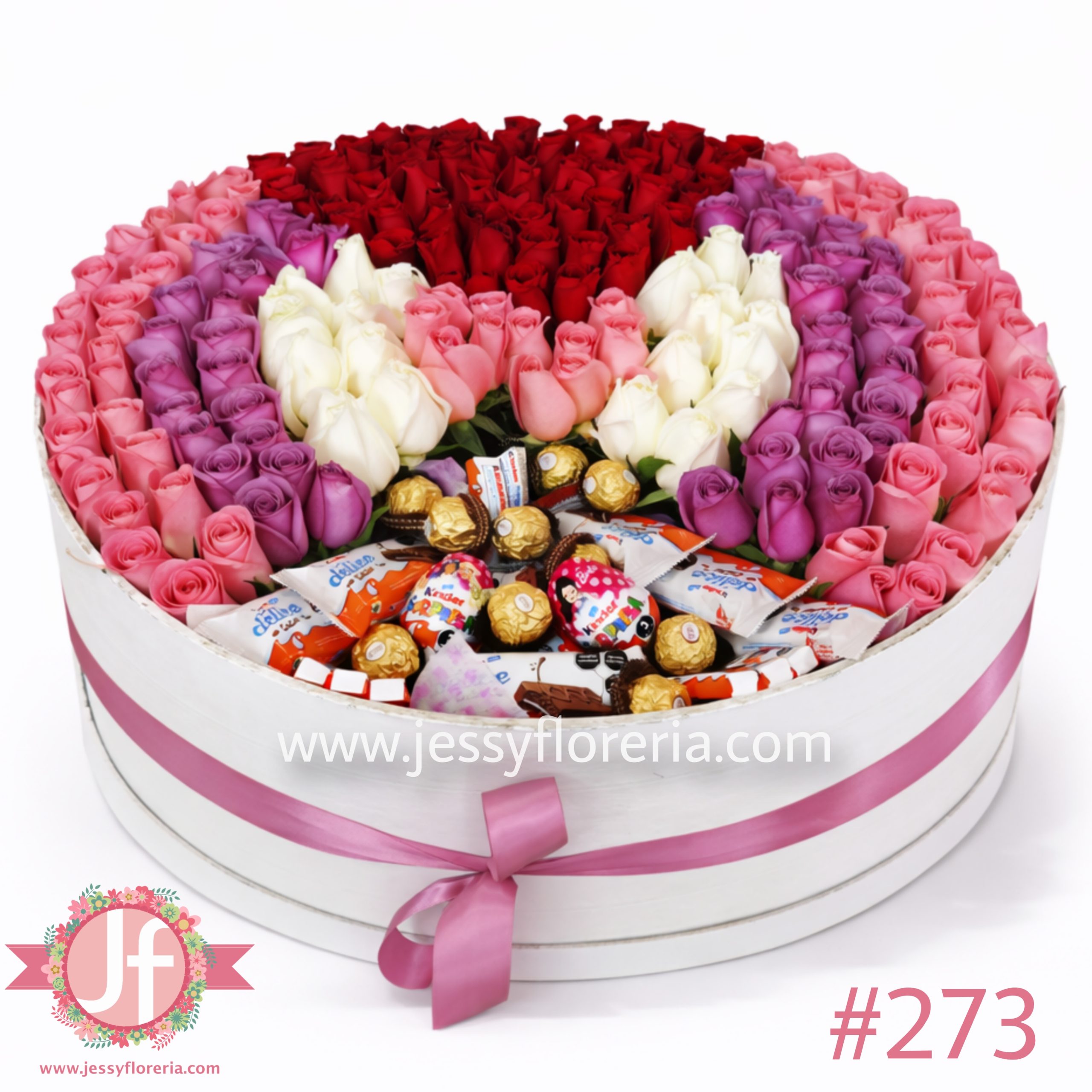 Puedes elegir el color de las flores o cotizar en otro tamaño, además de añadir globos, chocolates, botella de vino tinto o peluche.