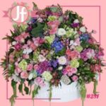 Puedes elegir el color de las flores o cotizar en otro tamaño, además de añadir globos, chocolates, botella de vino tinto o peluche.