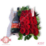 Caja de rosas y botella