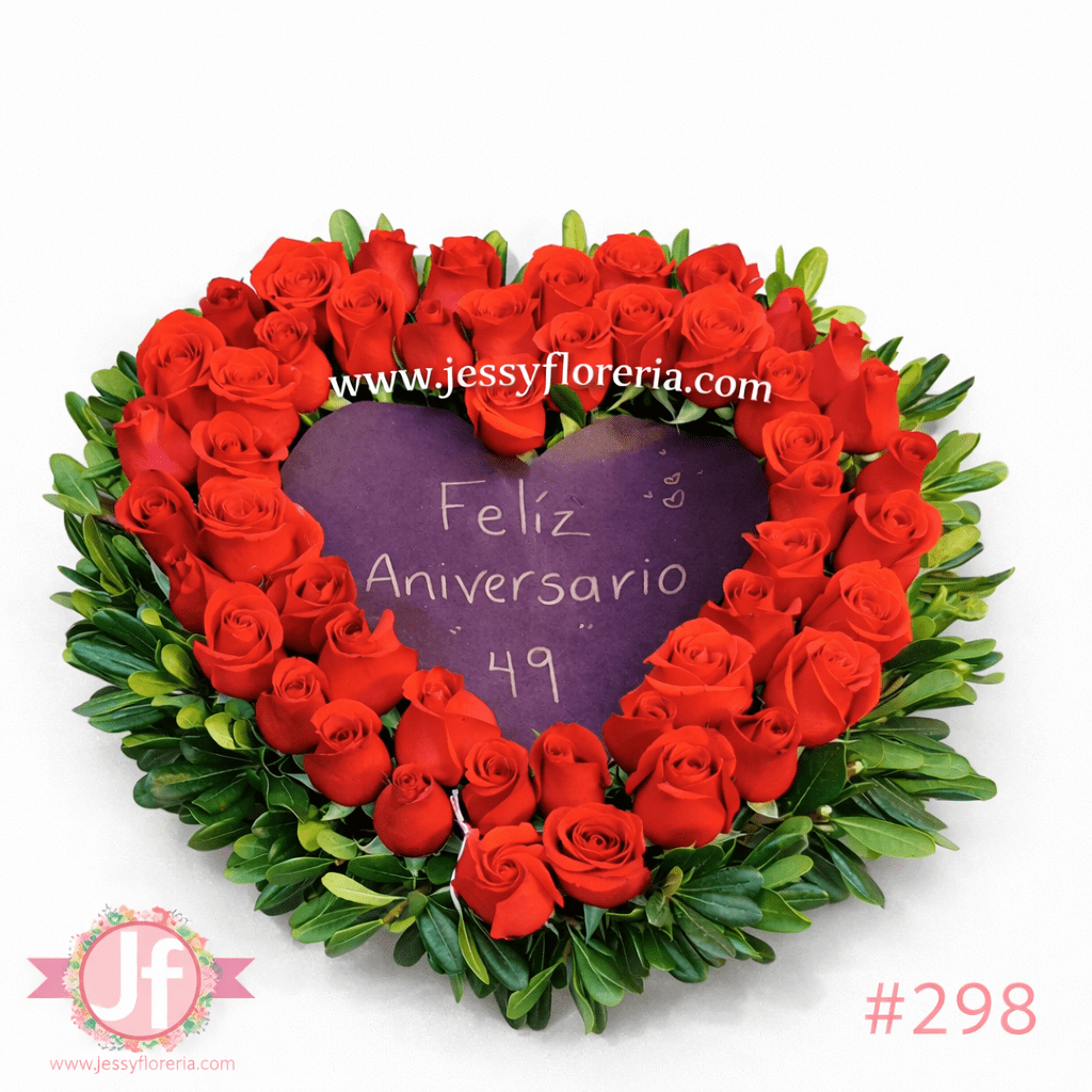 Corazón de 50 rosas con mensaje