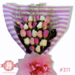 Puedes elegir el color de las flores o cotizar en otro tamaño, además de añadir globos, chocolates, botella de vino tinto o peluche.