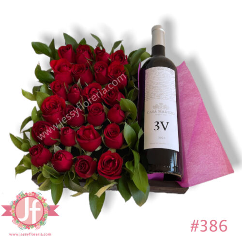 Sugerencia de mensaje para Caja 24 rosas vino 3V: “Aprenderé historias para contarte, inventaré nuevas palabras para decirte en todas que te quiero como a nadie”