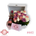 Cofre 25 rosas y Lambrusco rosado.